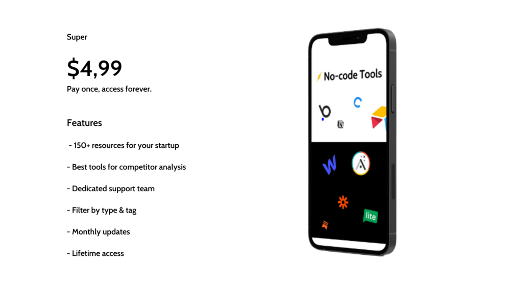 An Airtable list of the best No-code Tools to develop your business idea or improve your enterprise process.